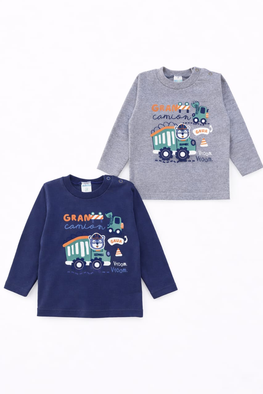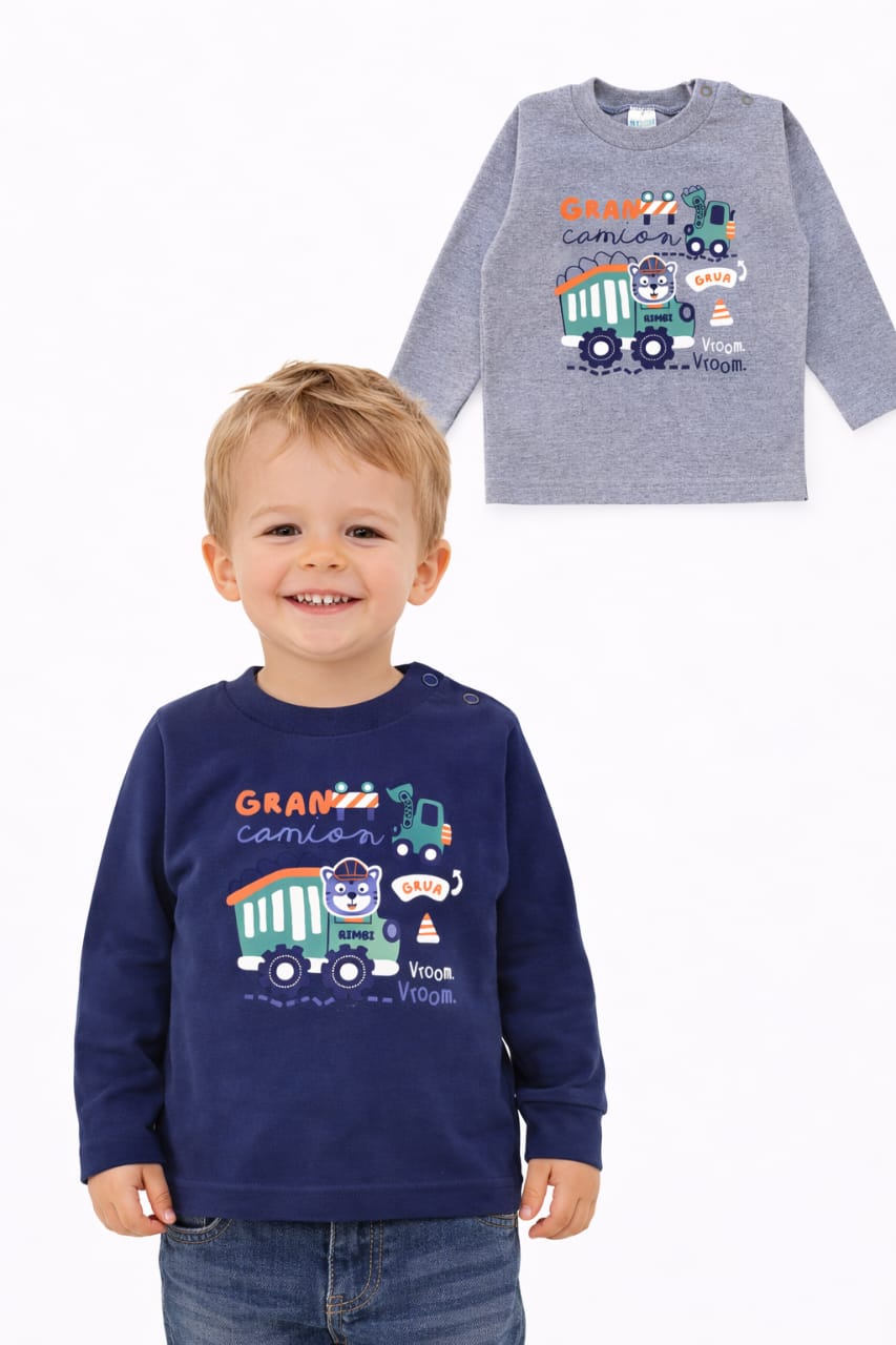 Remera manga larga, estampa Grúa camion, para bebe. Rimbi