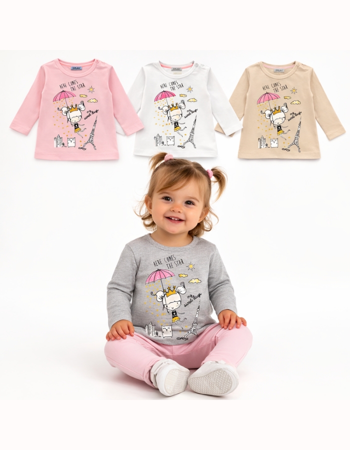 REMERA BEBA MANGA LARGA CON ESTAMPA MARIPOSA. RUABEL