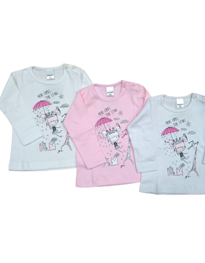 REMERA BEBA MANGA LARGA, ESTAMPA NENA Y CORAZONES. GRUNY