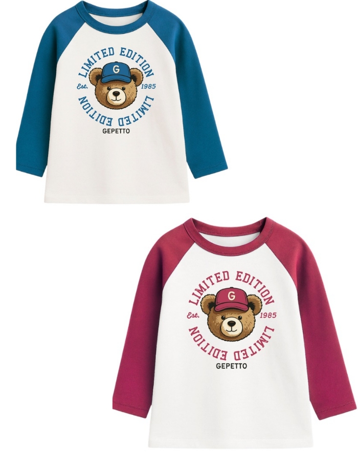 Remera bebe varón ranglan c/estampa oso.Gepetto