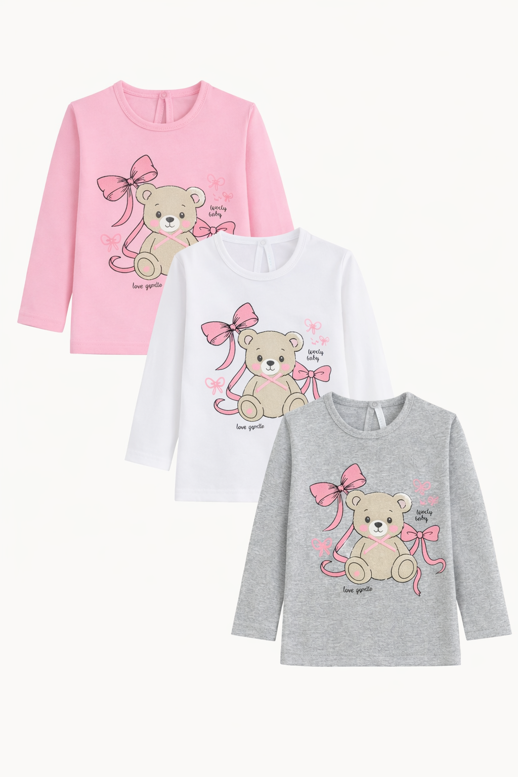 Remera beba nena c/estampa osito + moños.Gepetto