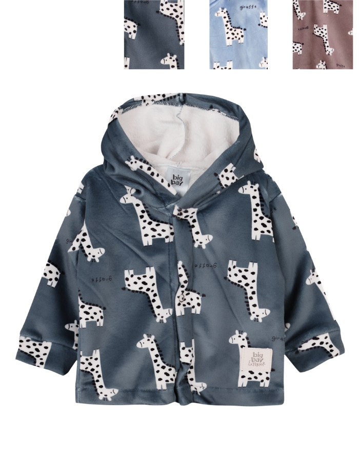 SAQUITO CON CAPUCHA DE PLUSH ESTAMPADO JIRAFAS. BIG BAY