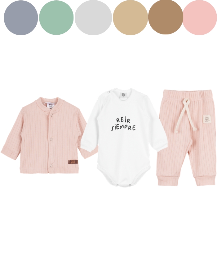 CONJUNTO 3PZS ALGODÓN DIF. SAQUITO, BODY Y PANTALÓN. BABY SKIN