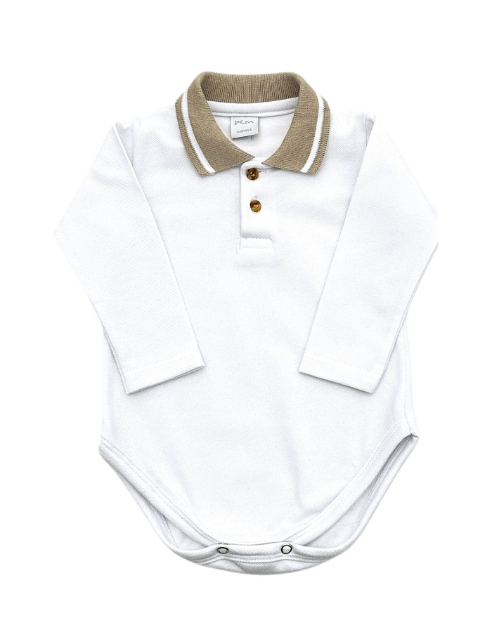 Body camisa rayada poplin beige para bebe. Labendel