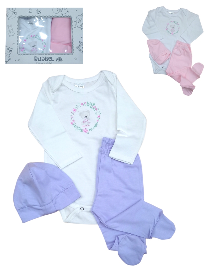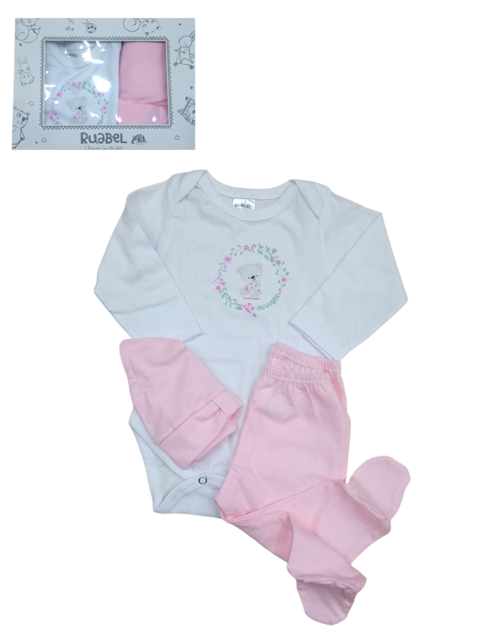 SET 3PZS BODY MANGA LARGA, MEDIO OSITO Y GORRO. RUABEL