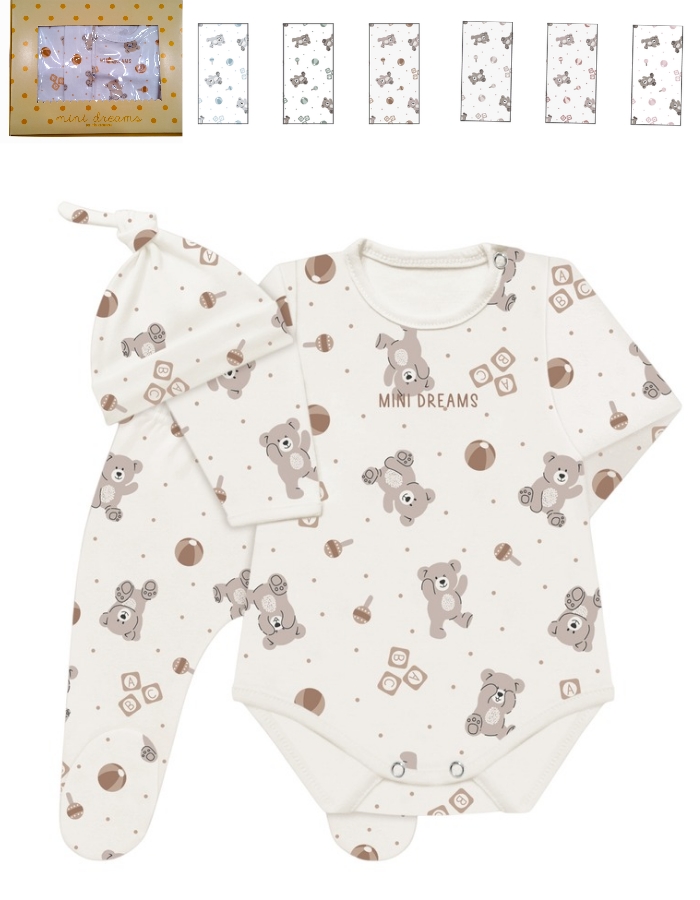 Set de ajuar 3 piezas algodon saquito body y pantalon.Baby skin