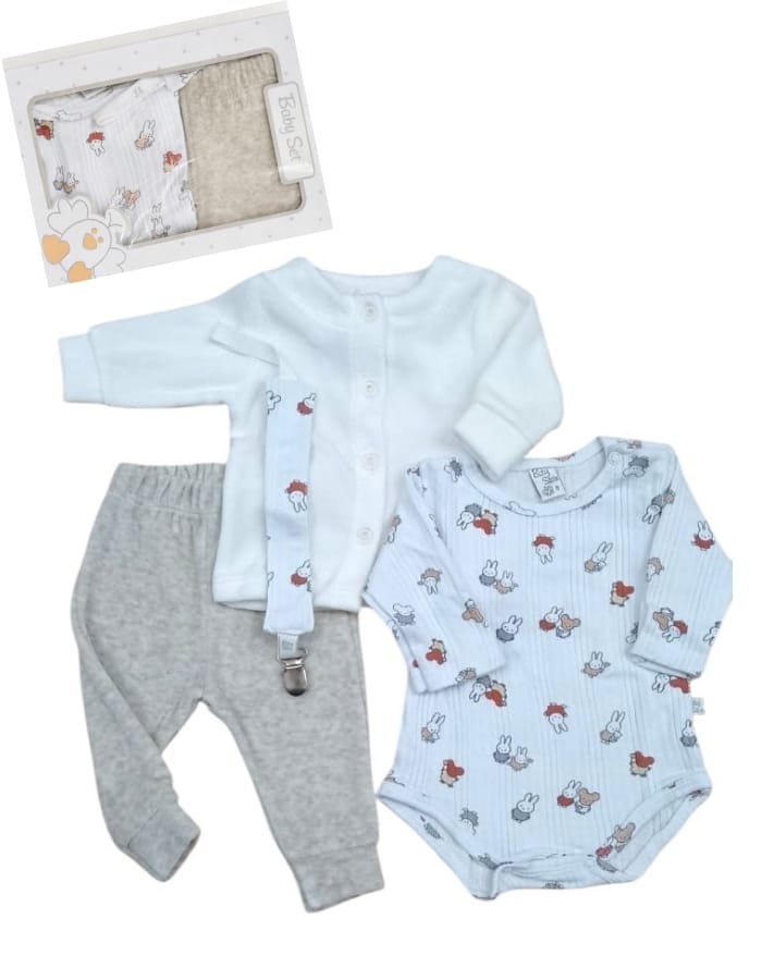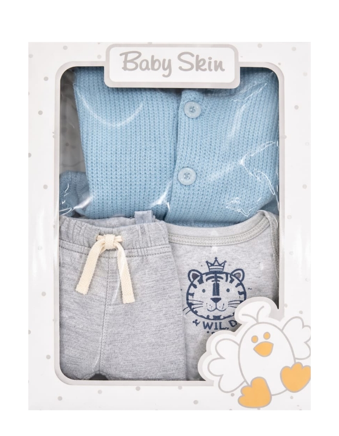 CONJUNTO 3 PZS ALGODÓN SAQUITO, BODY Y PANTALÓN. BABY SKIN