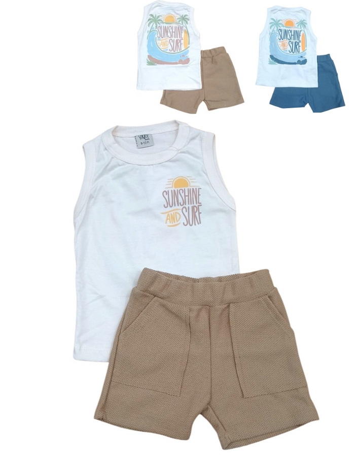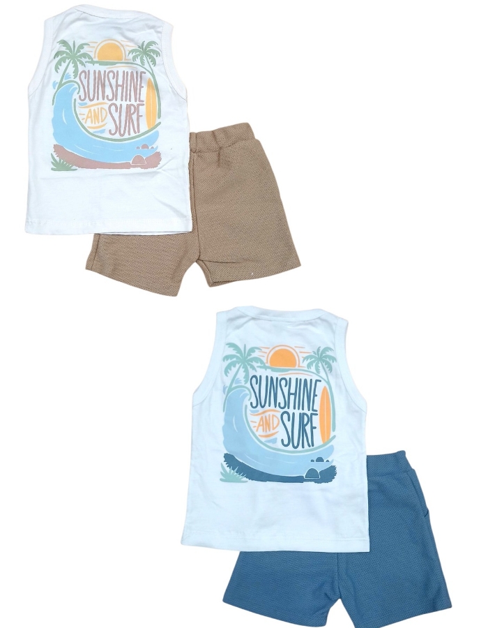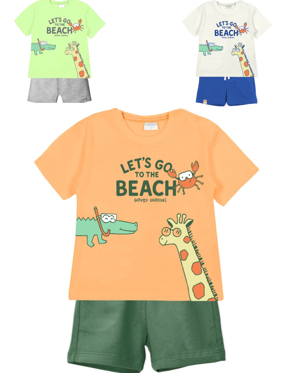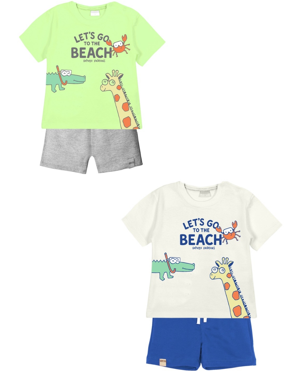 Conjunto: Remera manga corta estampada + short jersey. Big bay