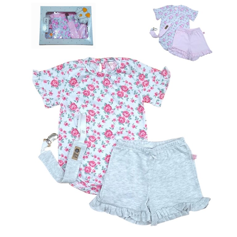 Set de 3 piezas para beba con bodyshort y portachupete.Baby skin