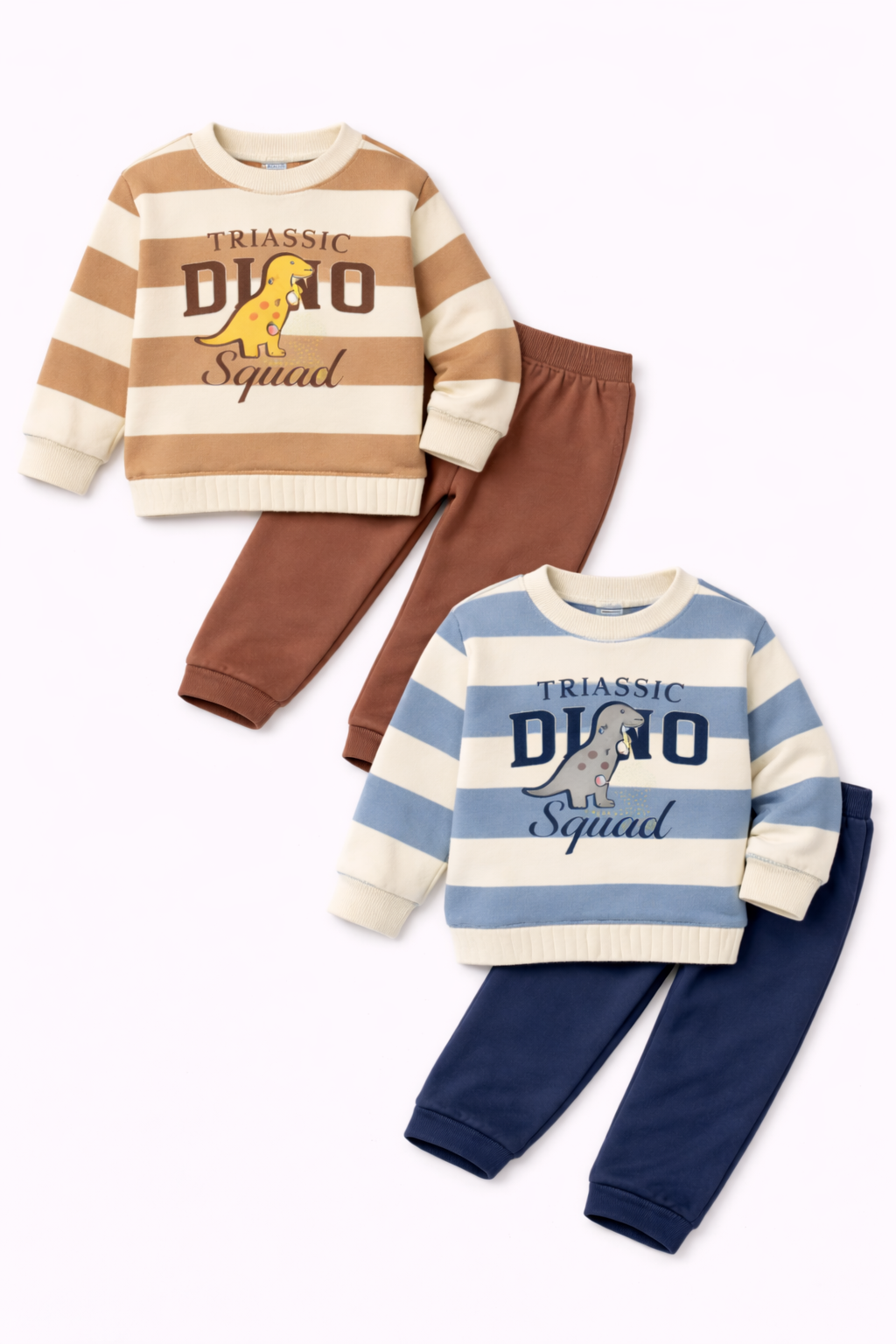 CONJUNTO DE FRISA PARA BEBÉ, PANTALÓN LISO Y BUZO RAYADO. YABY