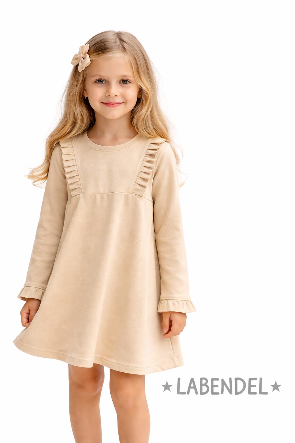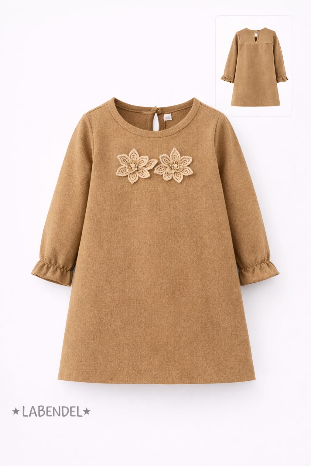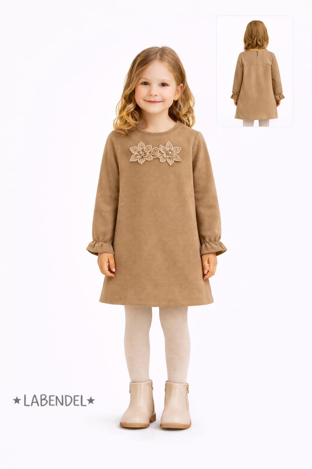 Vestido beige con 2 flores en montaine para nena.Labendel