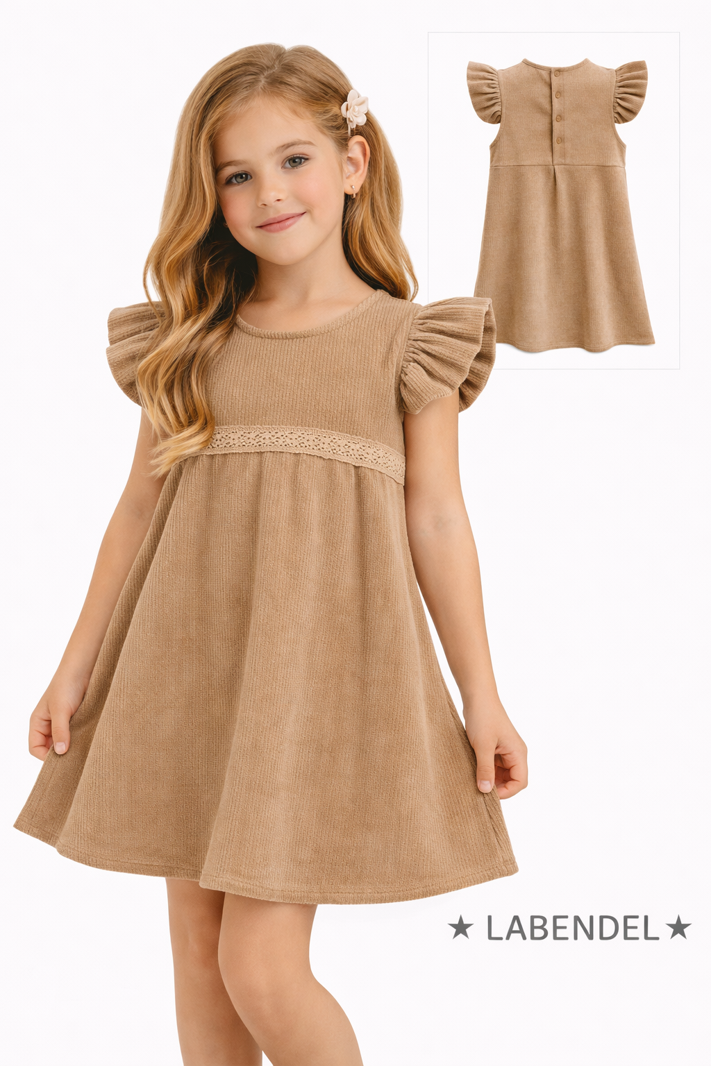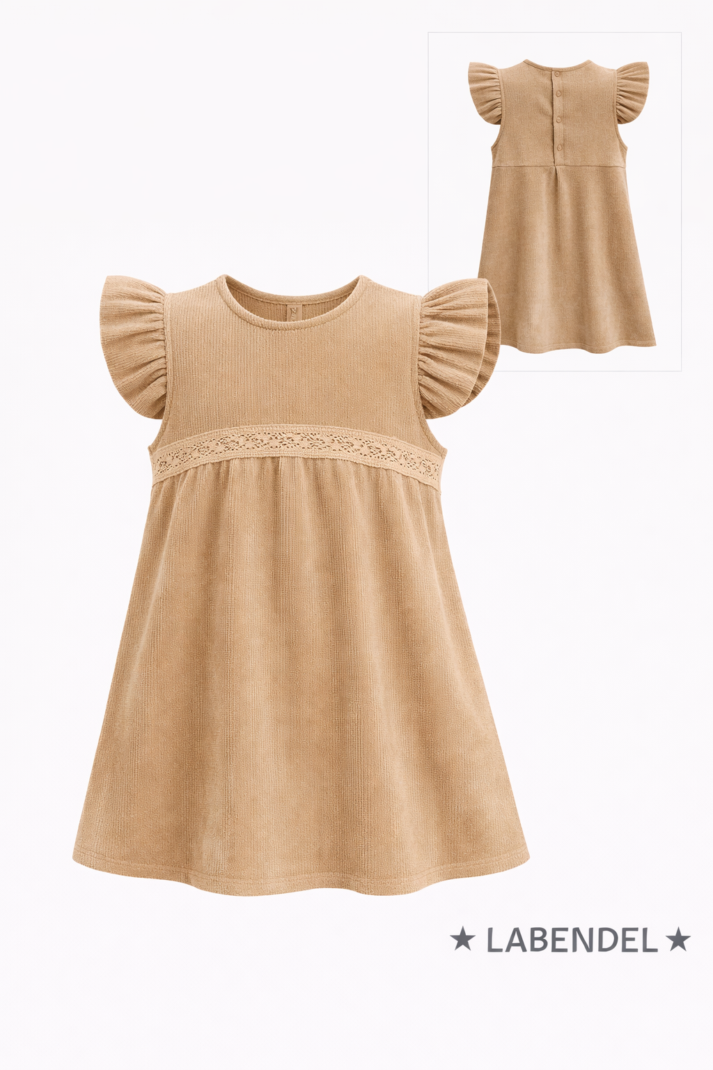 Vestido de corderoy beige con puntilla para nena.Labendel