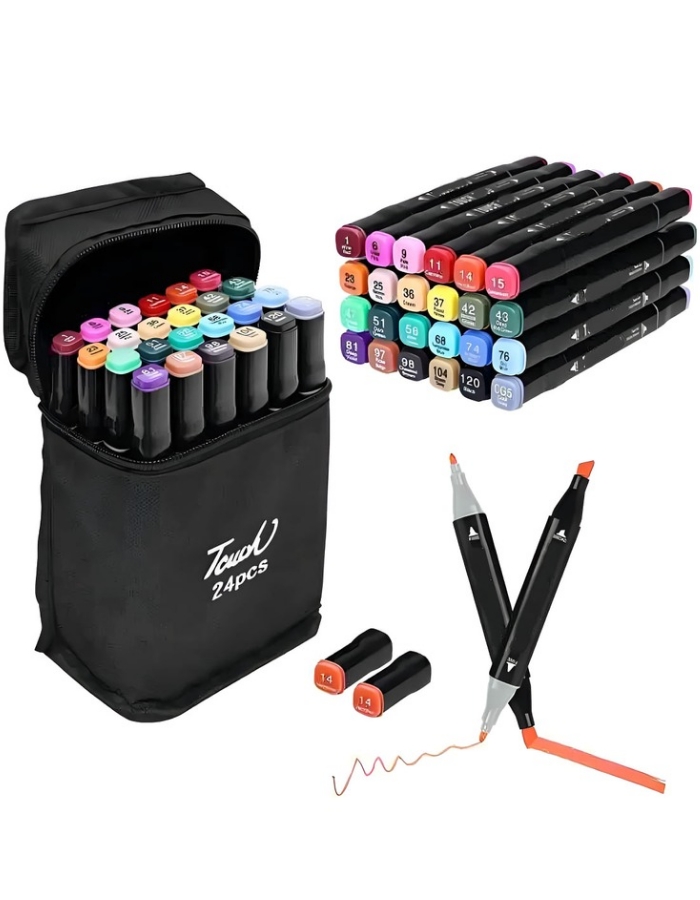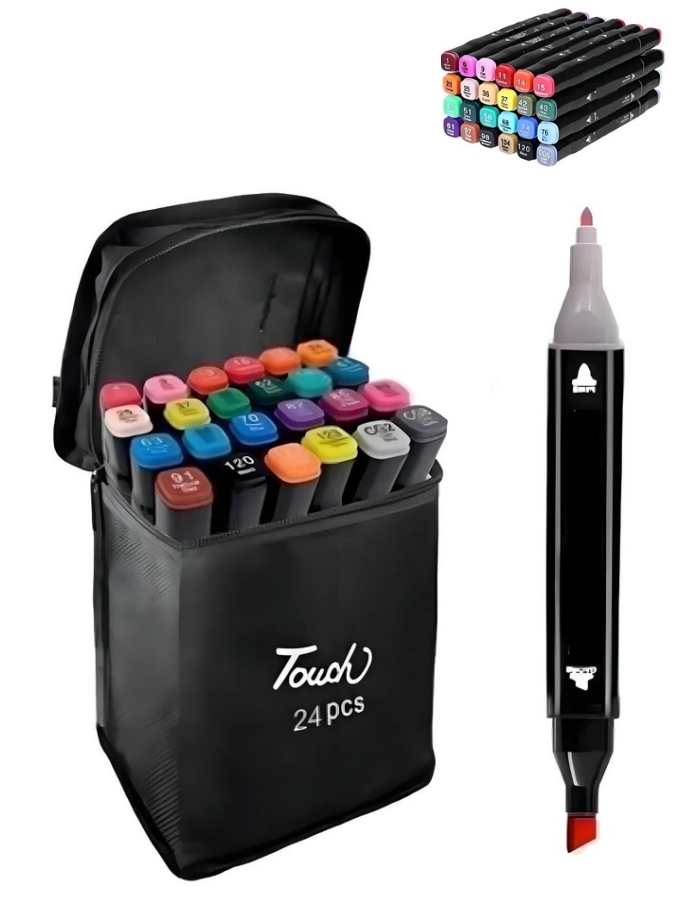MARCADORES DOBLE PUNTA X 24 UNIDADES EN ESTUCHE CON CIERRE